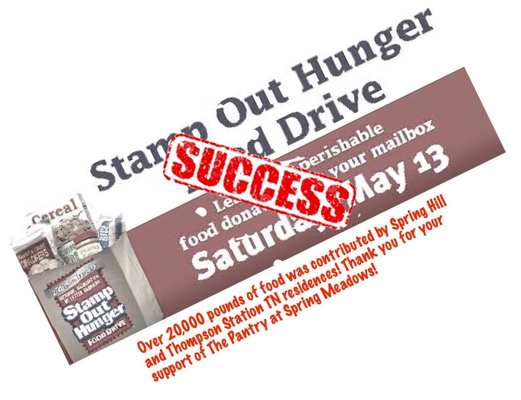 The Spring Meadows Pantry has been the designated recipient location for our area the past several years! This was a record breaking year for the Stamp Out Hunger Food Drive! Thanks to everyone who left food by their mailbox or worked the drive! We are excited about getting this food to those who need it!